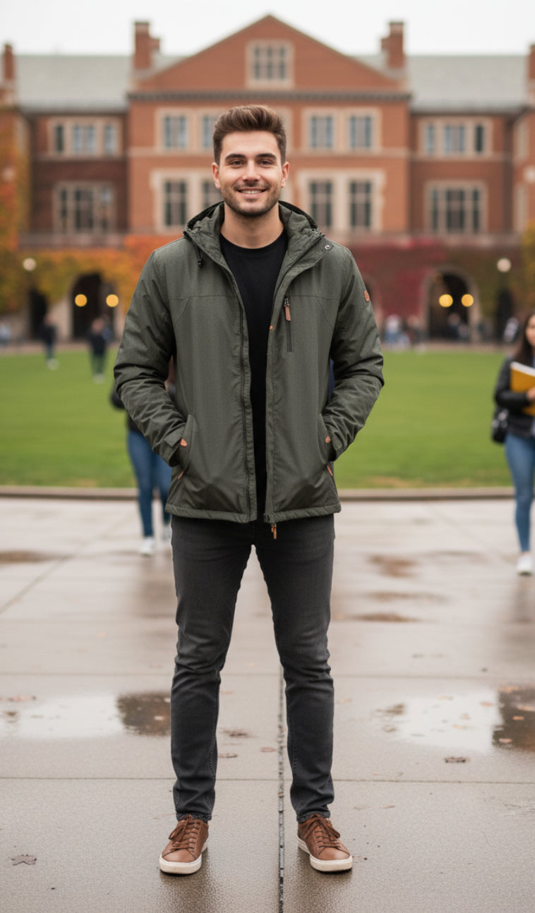 Sus múltiples bolsillos externos e internos ofrecen practicidad, mientras que su diseño liviano y versátil te permite enfrentar cualquier clima sin perder estilo.